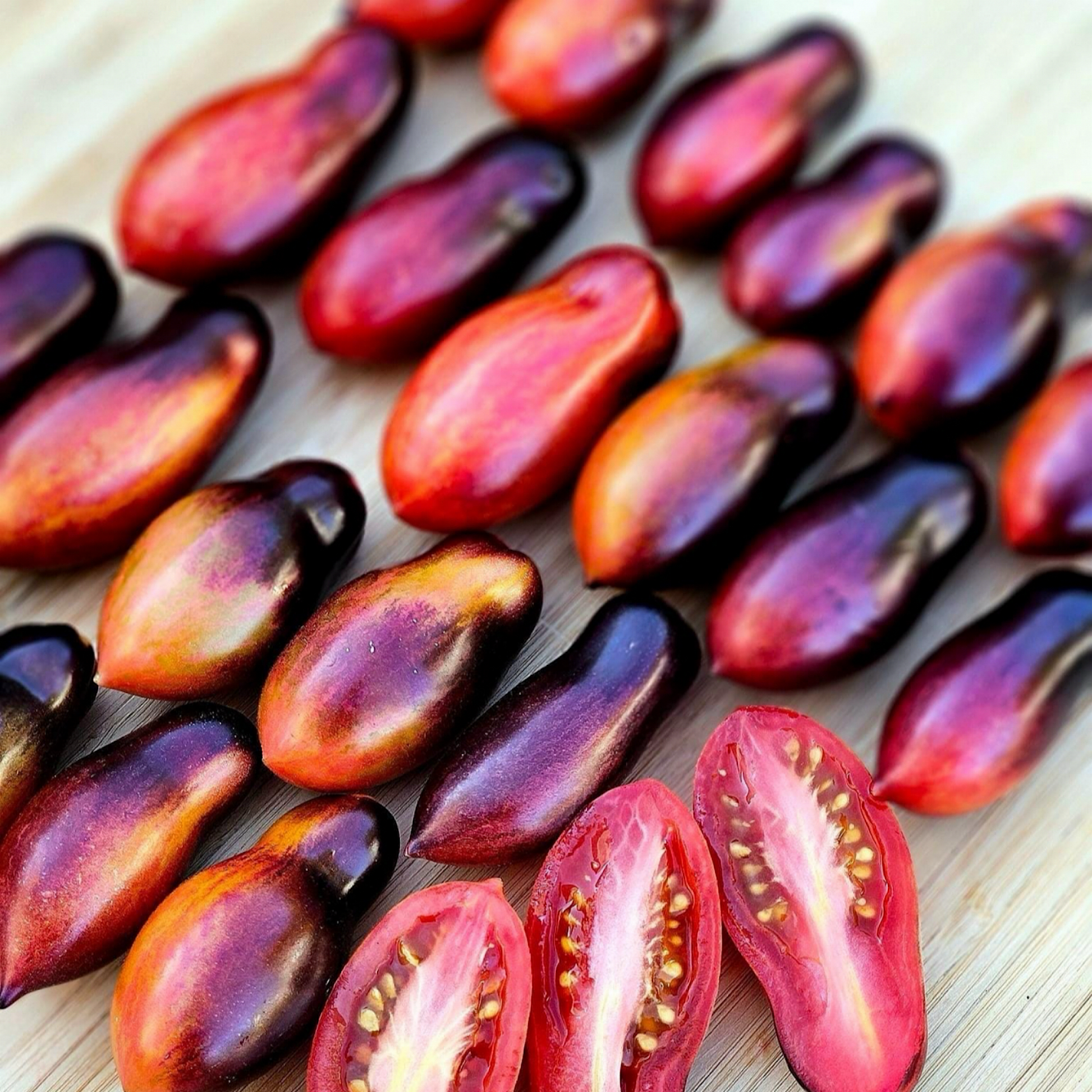Sleek, flashy, and packing serious flavor—Antho Pink Panther is a tomato that struts through your garden with style. These small, round fruits ripen to a glowing rose-pink base, cloaked in dramatic shoulders of glossy anthocyanin purple. Each tomato looks like it’s wearing a velvet tuxedo, and the taste? Sweet, fruity, and just a little wild.