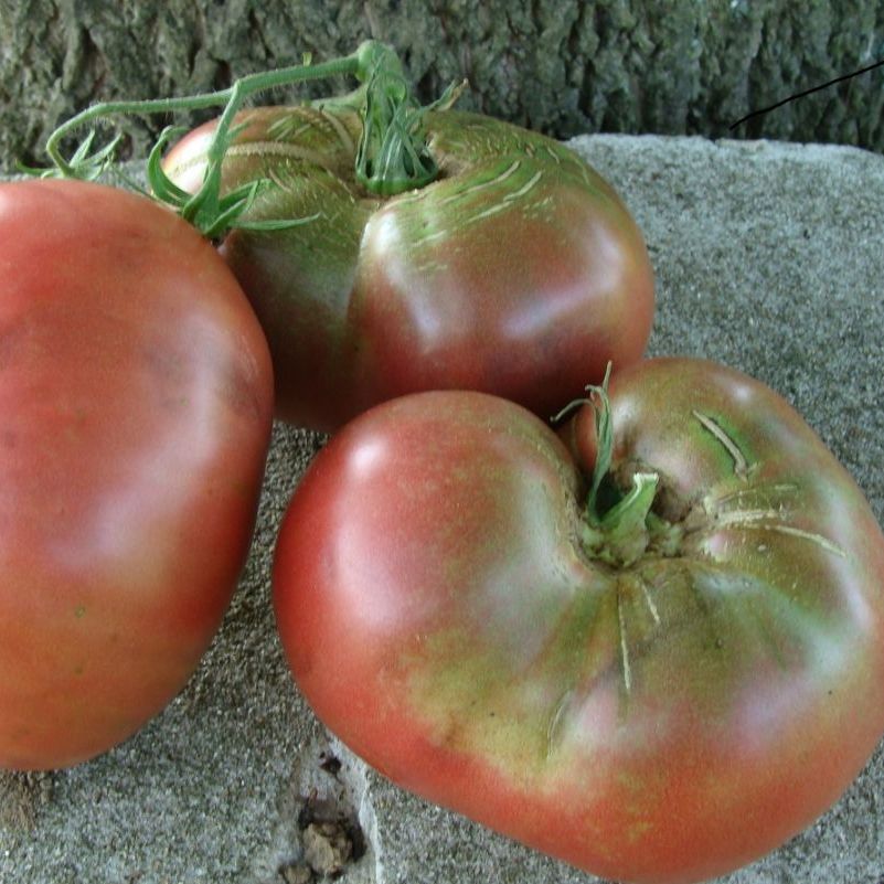 An old Kentucky heirloom from the late John Allen of Cartersville, Kentucky. Most weigh 1 lb. I love this tomato because the texture is firm. Very meaty like a piece of steak. More sweet than acid and I think the perfect BLT tomato. Crack-free and a real beauty.