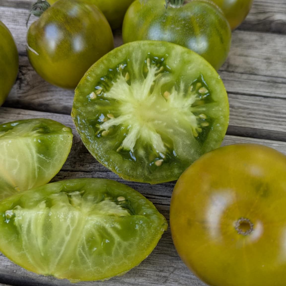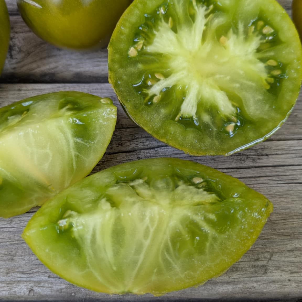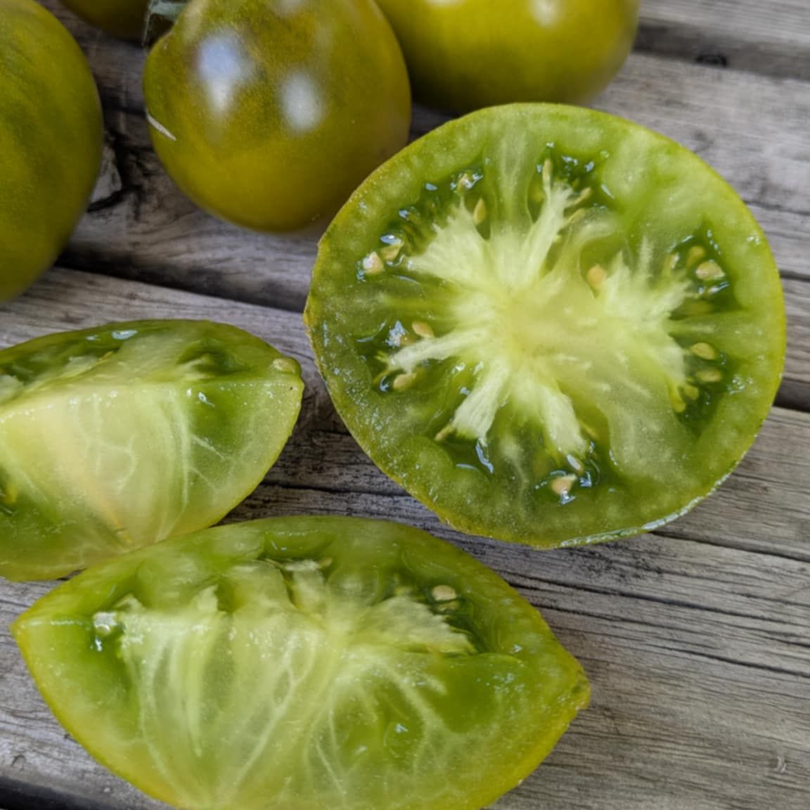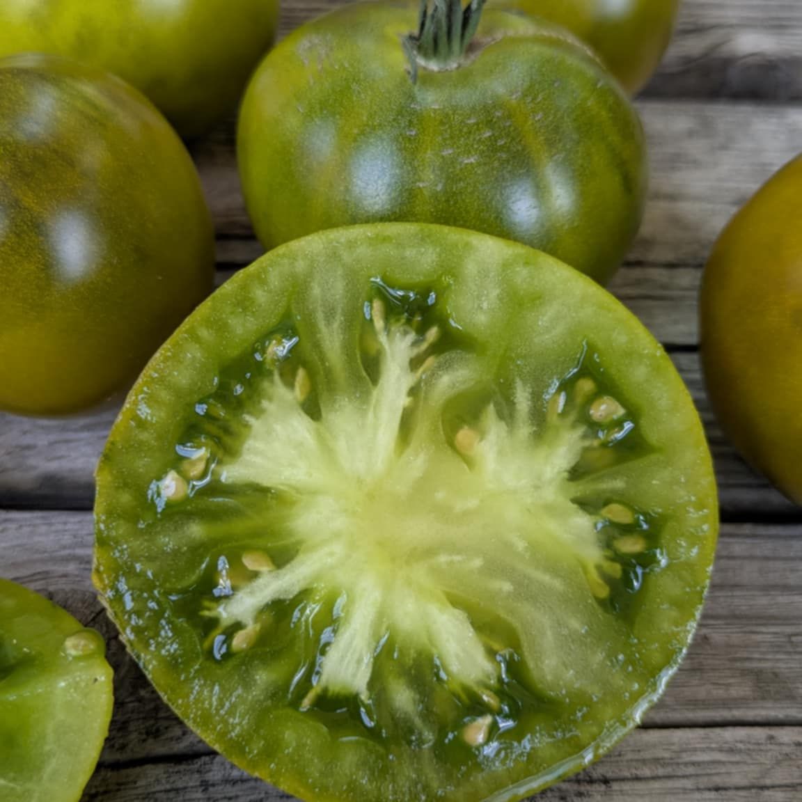 Chinese Princess- ( Kitayskaya Printsessa) This is a Russian variety of amateur selection (wish we knew the name of this amateur). Why it is called Chinese Princess, no idea. There really isn't a lot of information on this tomato. It was so productive! Super producer. Most averaged around 7 oz. Beautiful jade green beefsteaks with a bright green interior. Fresh, mild with a bright tang at the finish. Very juicy. I would recommend this more as a collector tomato, or as a breeding tomato. Don't pick these dead ripe, but just before. Indeterminate Mid-Season Regular Leaf