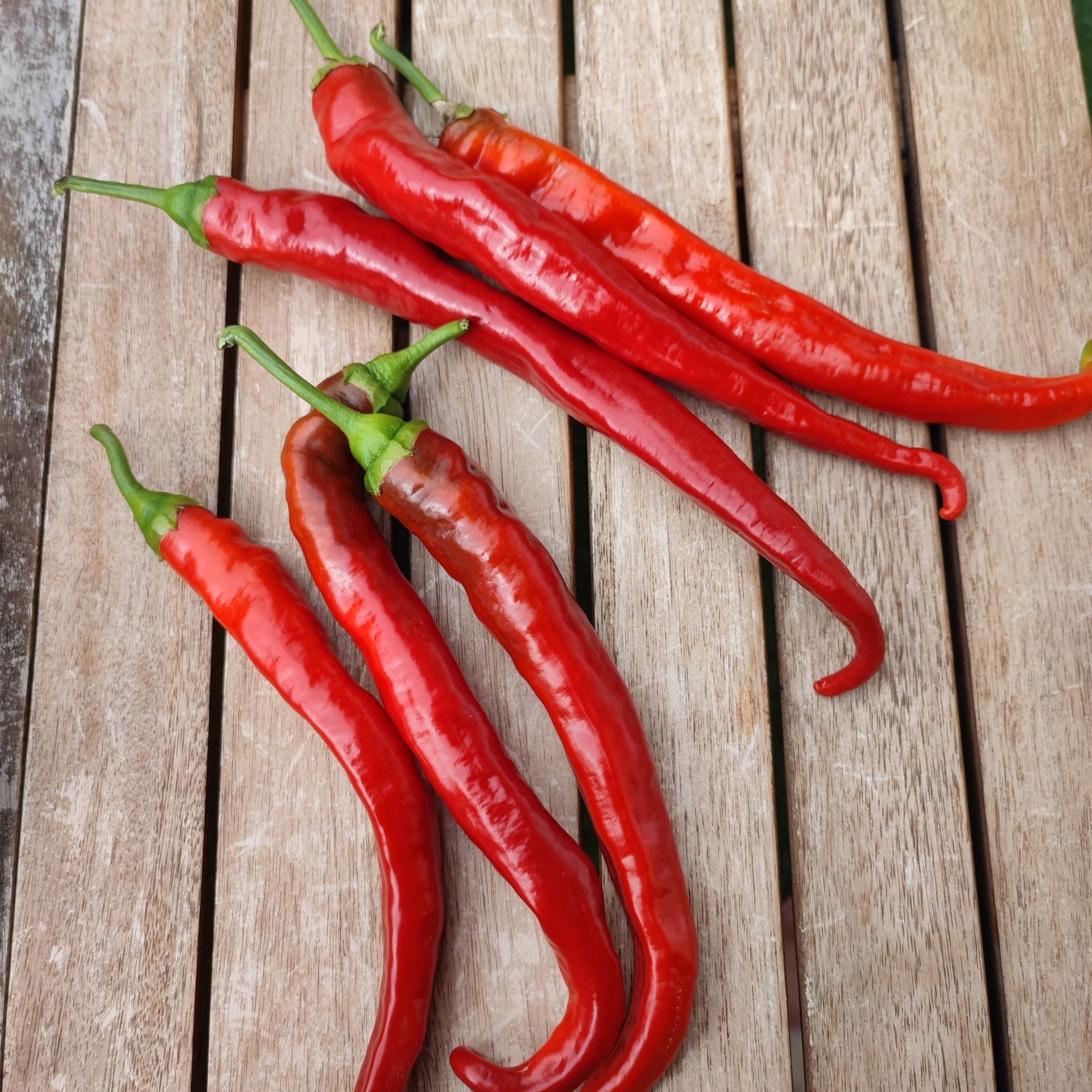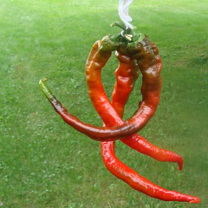A sweet pepper from Landes in the Southwest of France .The name translates "sweet from Landes" Honestly, the longest pepper I have ever grown. It is a twisty, long pepper that when green has a very distinct peppery taste with a very tender skin. When it turns red, it get's very sweet. This is one of my personal favorites. I never get tired of it. Good fried or chopped up in salad, preserved in vinegar or oil.