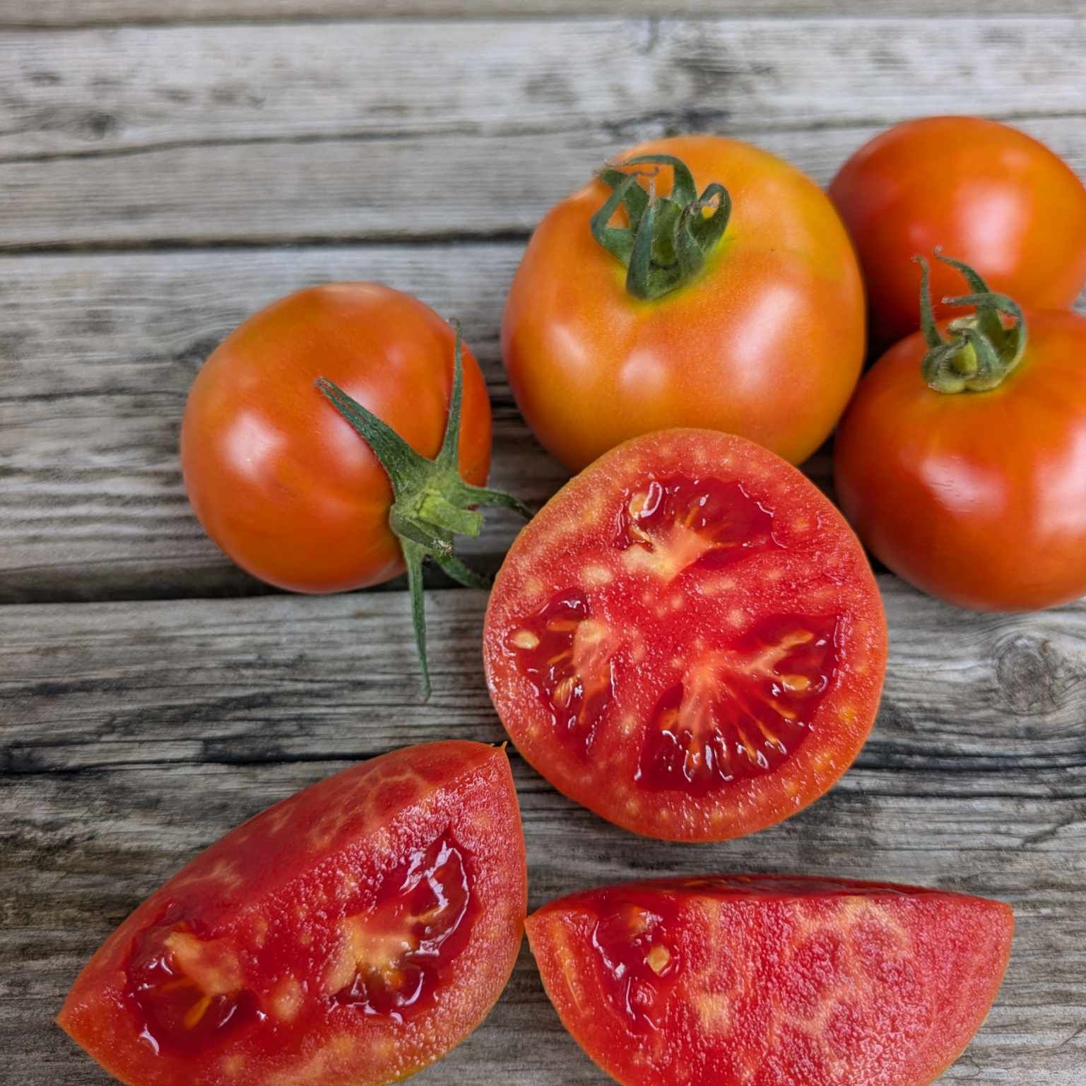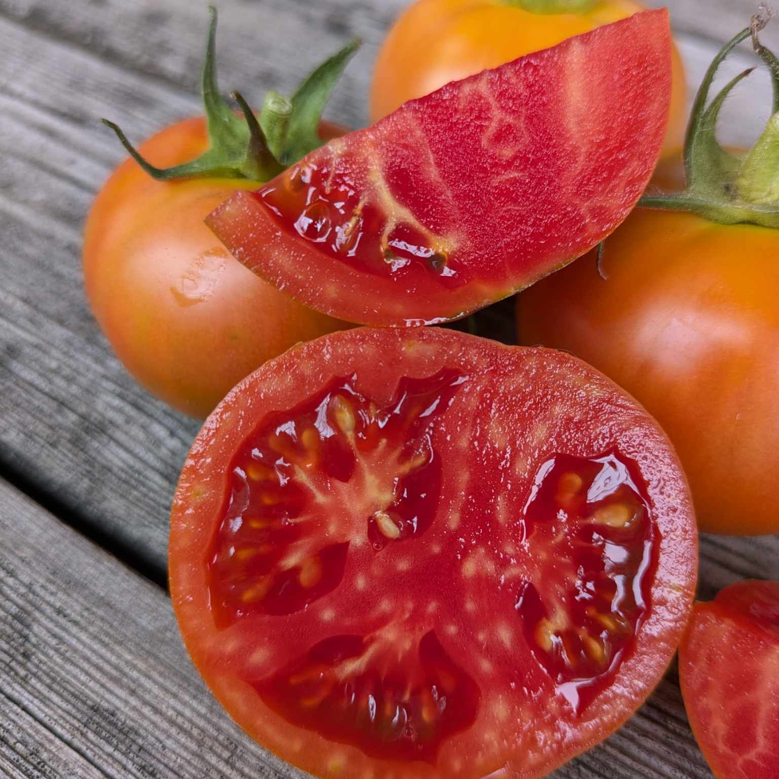 An orange, extremely late dwarf cherry tomato. It lends itself well to long-term storing, for those that want summer tomatoes well after the season is over. You may store them in a cool cellar for an extended period of time Their skin is bright orange, while the flesh dark red. Lolek has tolerance to bacterial leaf spot and resistance to Verticillium wilt. Especially good for preserves or jams,excellent for juicing and purees. Rich in beta-carotene. Determinate Regular Rugose Leaf Very Late Season -- Longkeeper