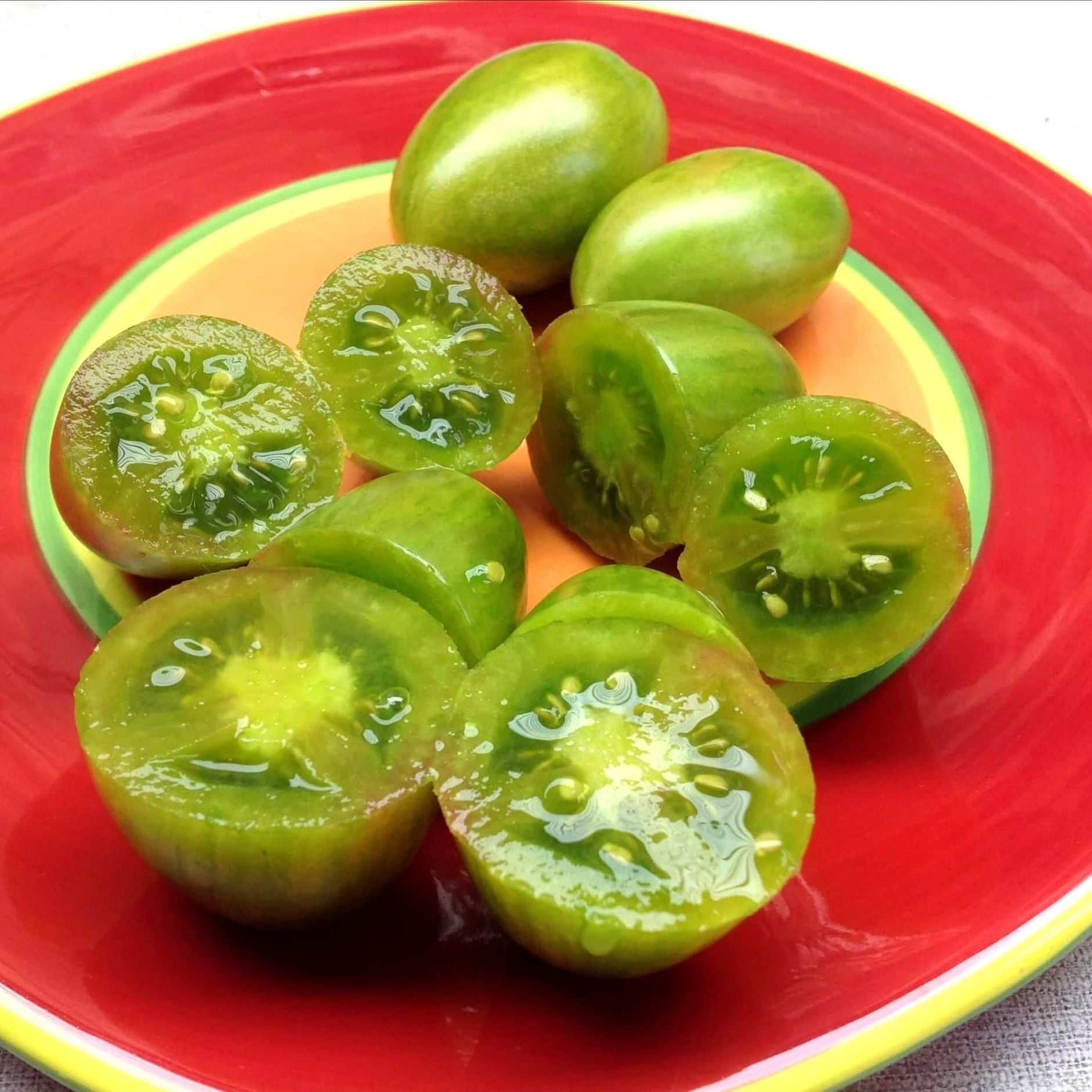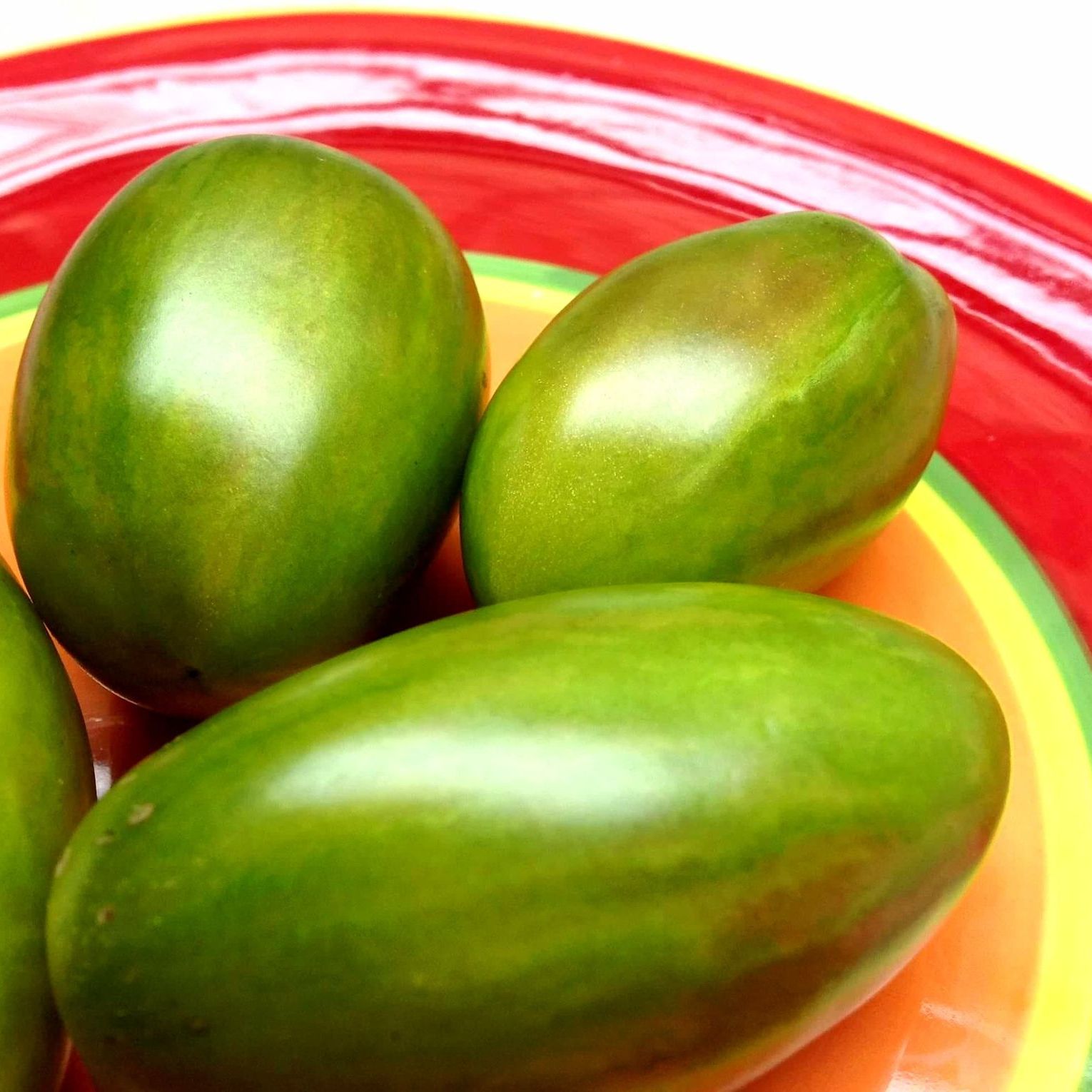 Lucky Tiger - 10+ Organically grown seeds This tomato comes to us from Artisan Seed. Described by the breeder as bright and very sweet. They remind us a bit in appearace of jalapeños (with stripes). So many varieties from Artisan Seed are beyond excellent and this one is no different. A large, elongated cherry type tomato with prominent green striping. It's also open pollinated for those growers that like to save seed. Indeterminate Regular Leaf Mid-Late Season