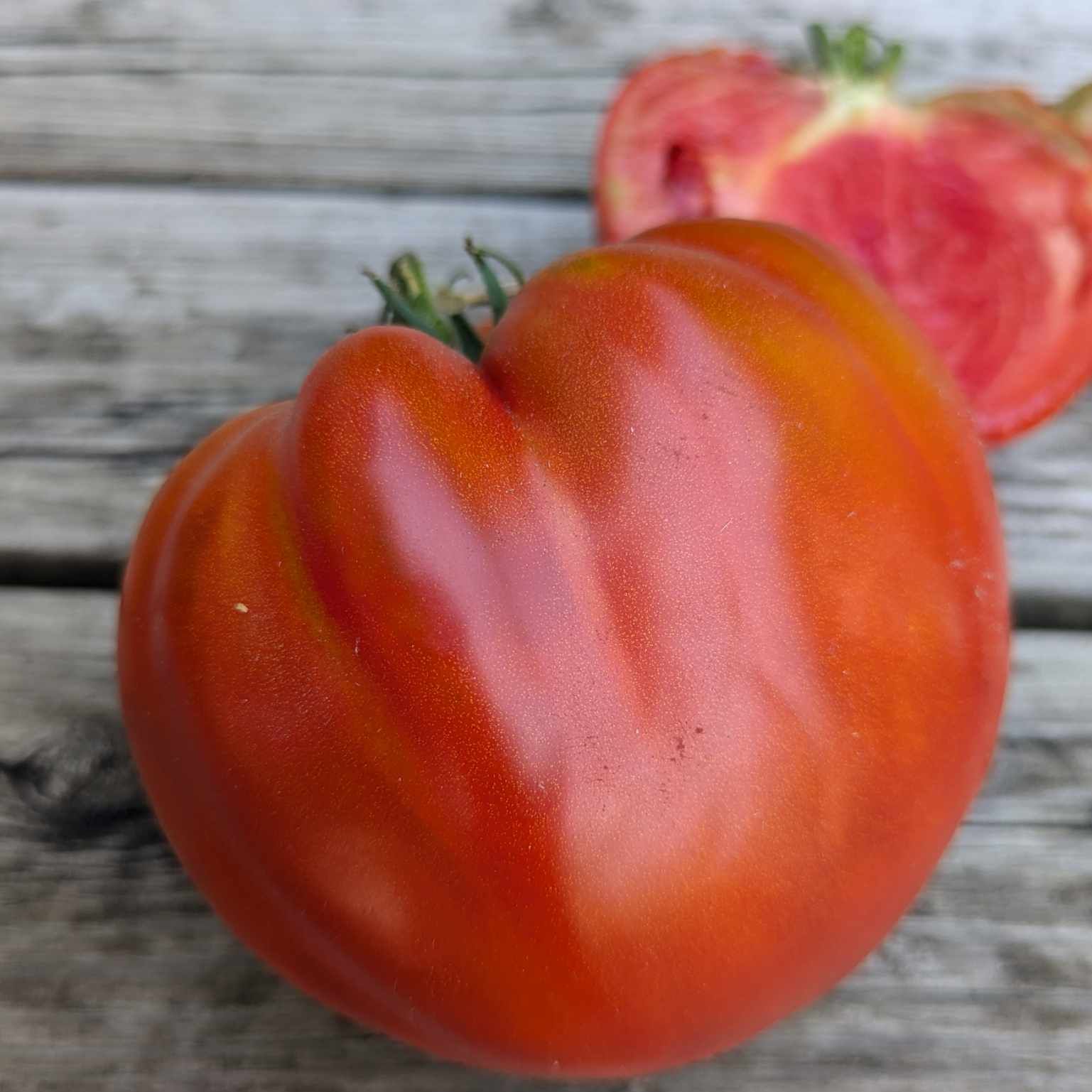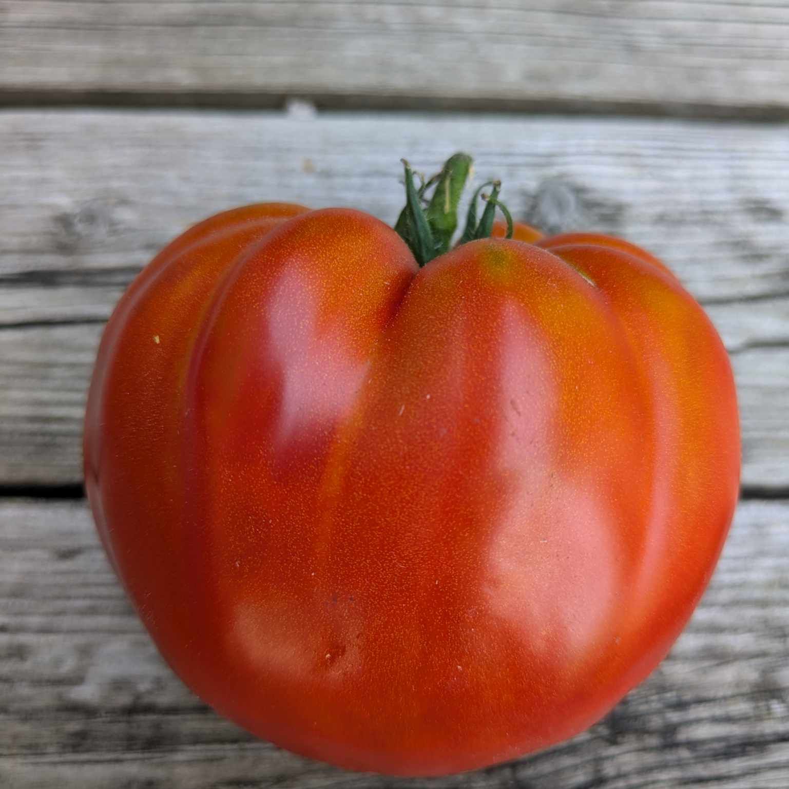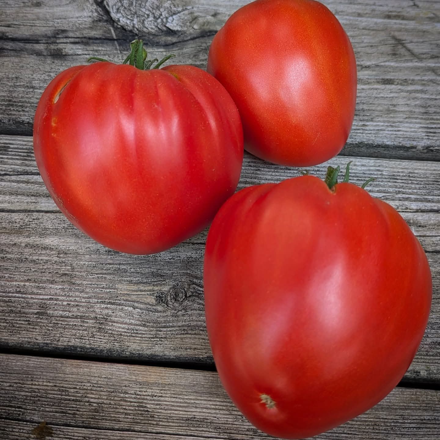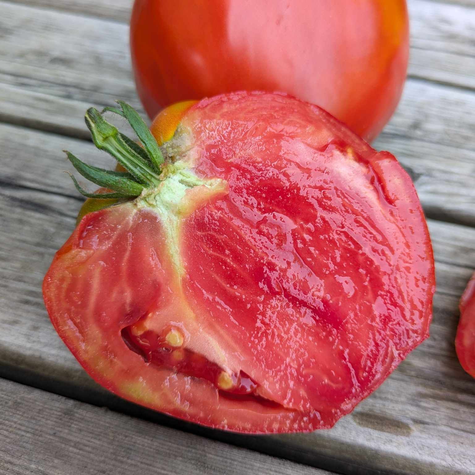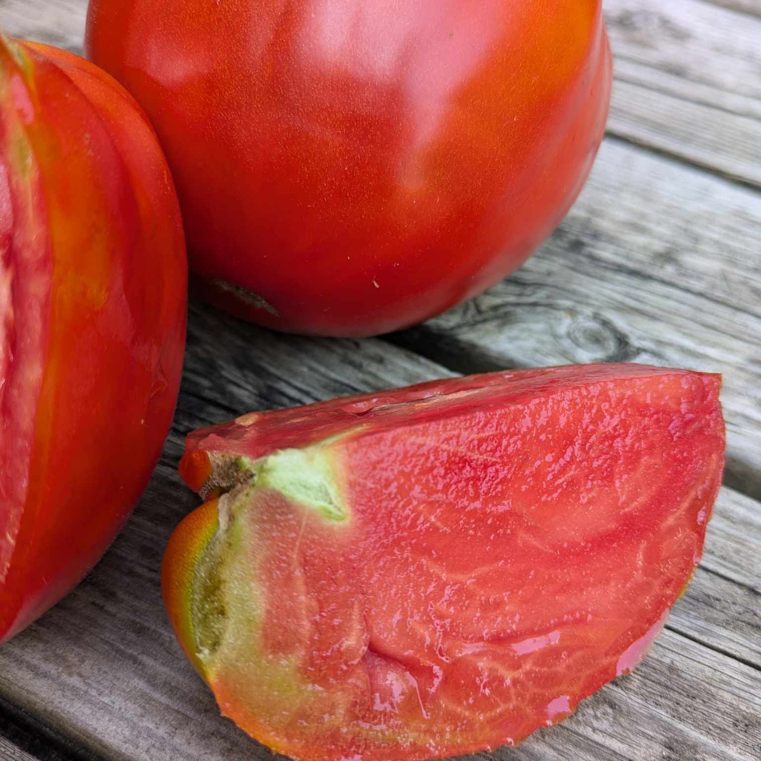 This is a red, meaty, gorgeous tomato that immediately made me think of meatballs. It makes a great sauce tomato as well as fresh eating.