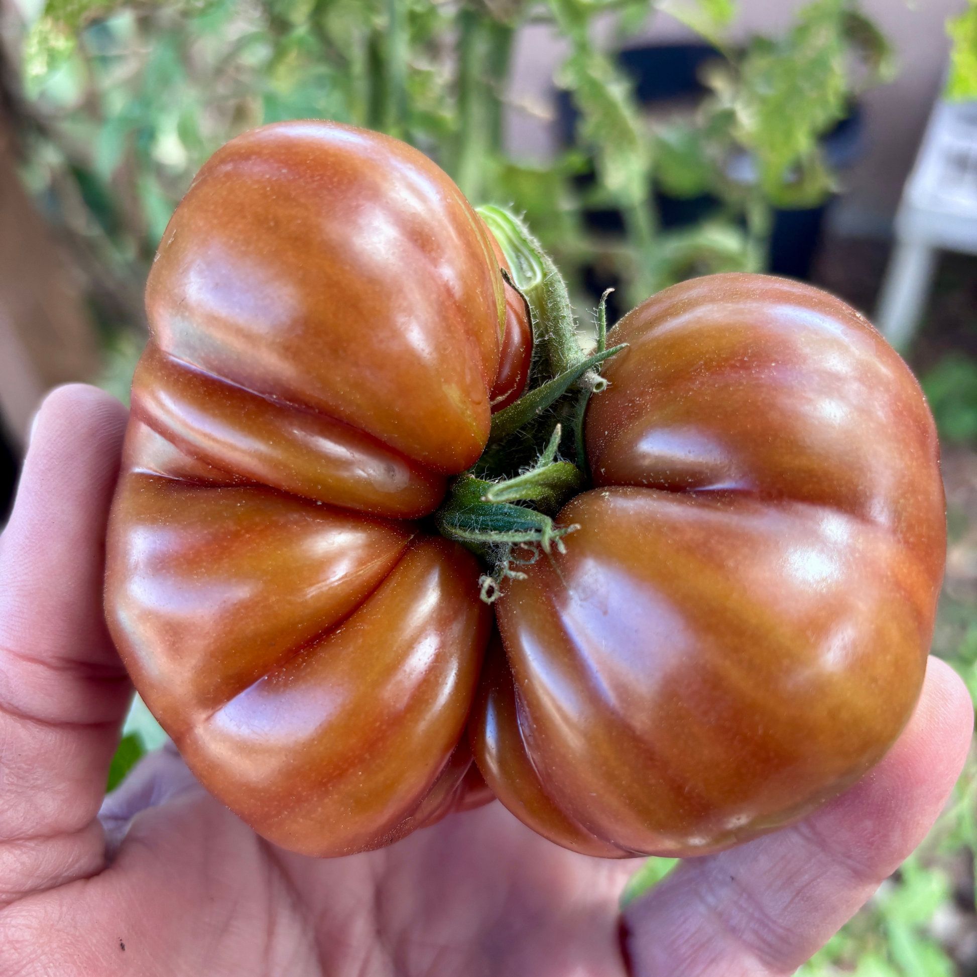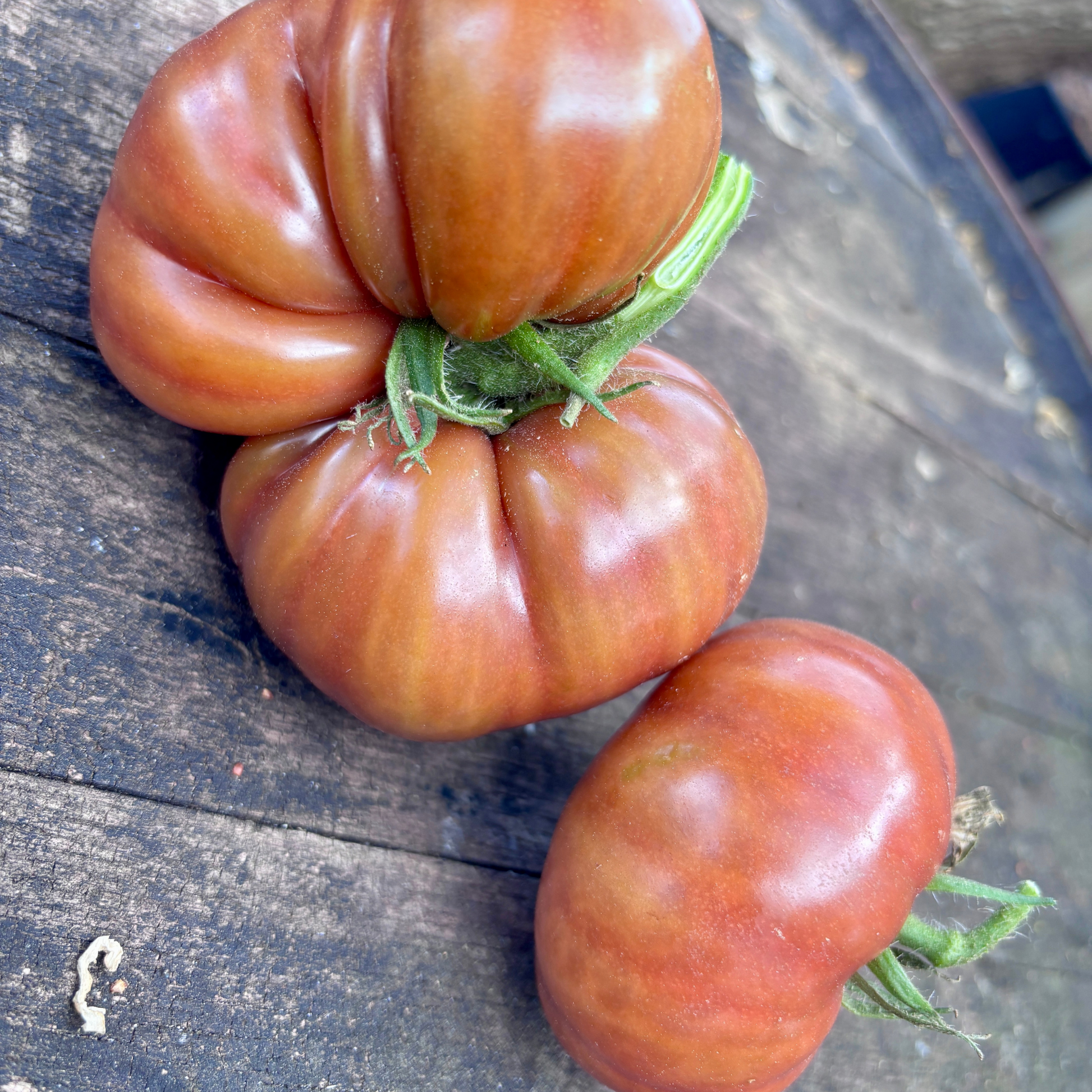 Bold. Striking. Impossible to ignore—Notorious is a tomato with presence. Bred by Georgia grower Bill Yoder, this variety commands attention with deep crimson copper skin and a sultry, glossy finish. Every fruit looks like it’s ready for the spotlight, and its flavor backs up the hype: intensely rich, slightly smoky, and deeply savory with just the right pop of acidity.
