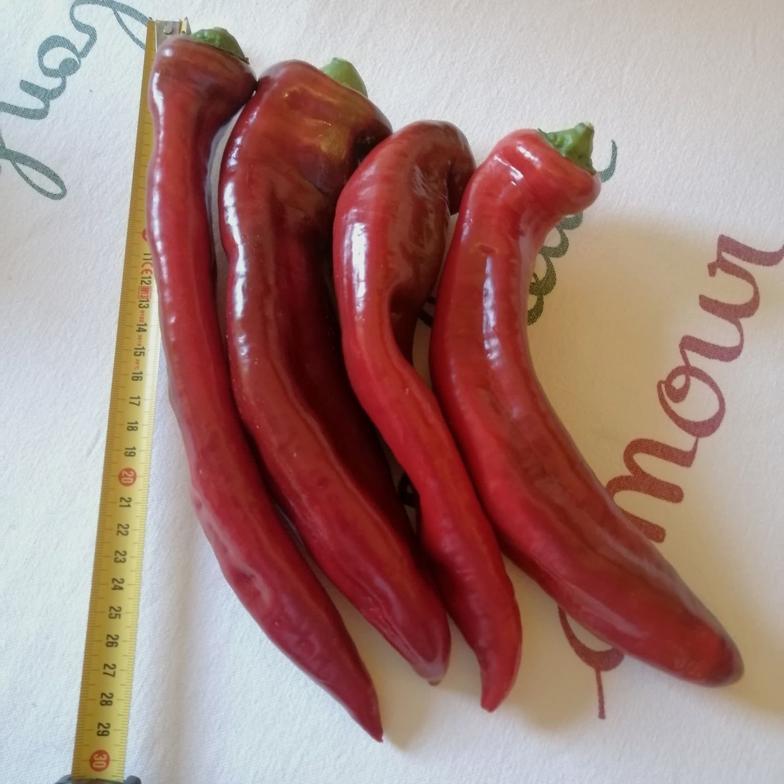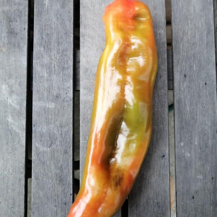 This is a sweet (dulce) deep red Italian pepper. We've seen it called Palermo Sweet also. It can also be eaten in the green stage very nicely. It has a brix score of 9 which makes it extremely sweet. Thin skinned and super productive. Excellent for stuffing or grilling then adding a little sea salt and olive oil. Can be used in tomato salad also.