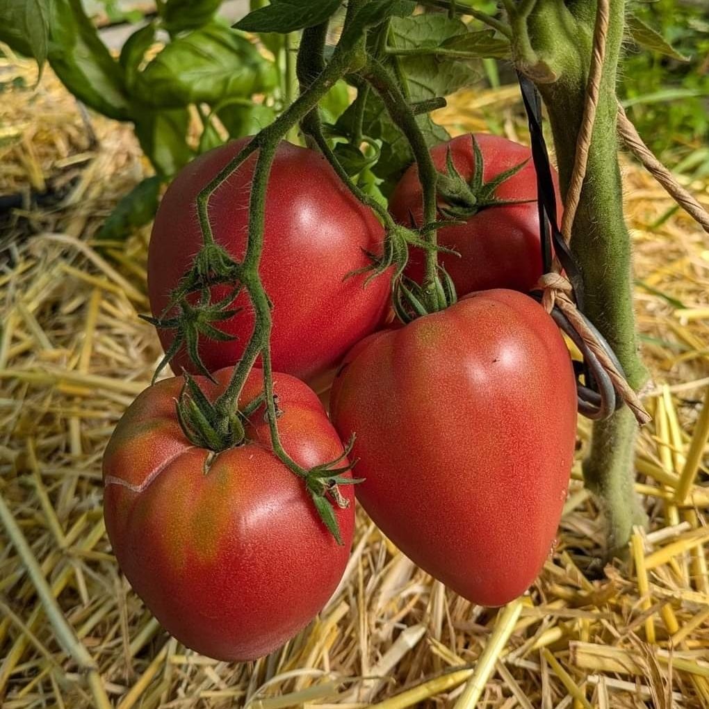 First, it's a beauty. Growing in clusters of heart shaped fruits, blemish free, crack free. It is moderately productive setting most of it's fruit mid-season. As with most heart shaped tomatoes, the vines are wispy. Very little seed. Sweet and very meaty. Excellent paste for sauce or just fresh eating. Due to the low seed count, we can only allow 1 PACK PER CUSTOMER. If you have any information on this tomato, please feel free to message or email us, we would appreciate it. Indeterminate Regular Leaf Mid-Season