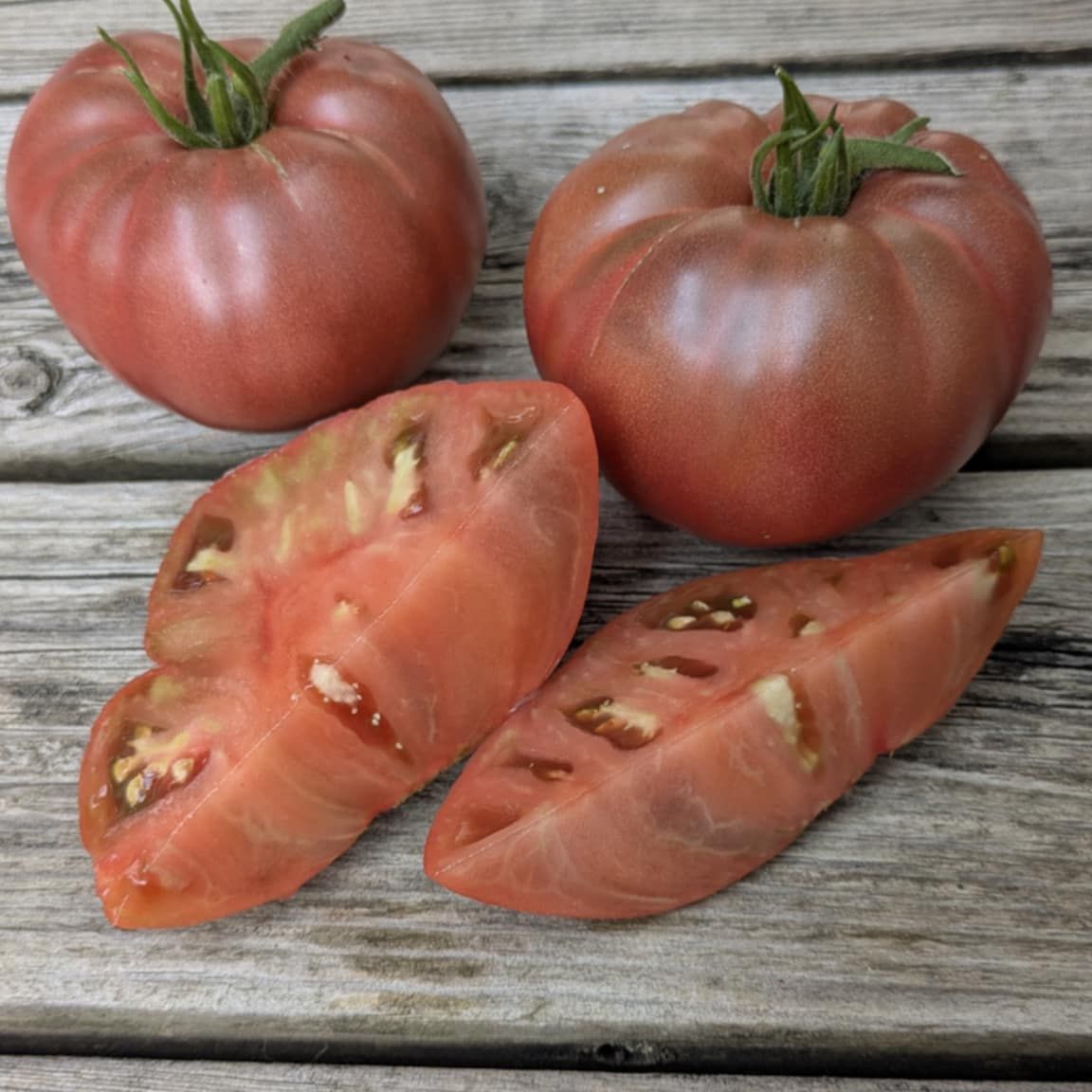 Wild Spudleaf Dwarf - 12+ Organically grown seeds This is a variety that came from the Dwarf Tomato Project. A cross between Dwarf Wild Fred and Spudakee. A solid purple globe that's both juicy and meaty. This is one of our favorites. Very productive but does better in the second half of the season. We grow ours in 15 gallon buckets and they thrive. Perfect purple globes 150 to 300 gr. An exceptional tomato especially for a dwarf variety. If you love purple tomatoes, this one should be included in your garden. Can be used in any capacity, sauce, salad, fresh eating and sandwhiches. Determinate Mid-Season Potato Leaf