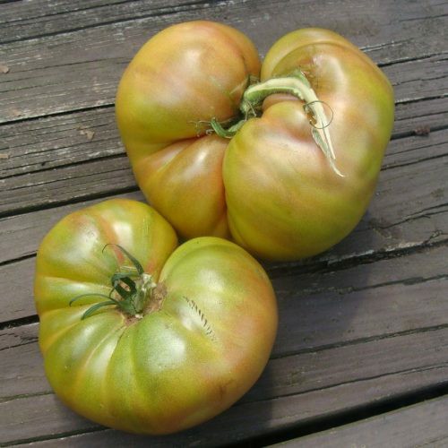 Wild Thyme GWR - 10+ Organically grown seeds This beauty comes from Bill Jeffers. A beautiful multi-colored green when ripe. Most average a pound. Slice this one open and it's like a piece of art. Has a mild but sweet taste. Impressive all around. Indeterminate Potato Leaf Late Season