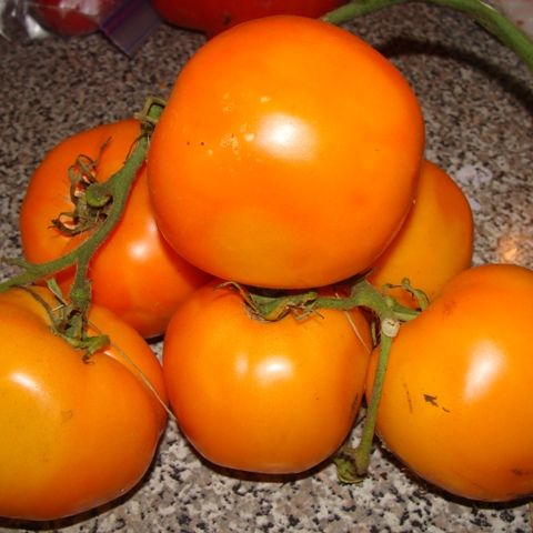 Thick and meaty, suitable for canning and slicing. Seems tolerant to diseae and produces blemish free fruit most averaging 8-12 oz. I highly recommend this especially to seed collectors. I love the history and wish more people grew it. It has the mild, easy taste of the yellows but solid slices for sandwiches. Very good eating even if you are not a collector. We've been sold out of this for years and are happy to once again offer it. Indeterminate Regular Leaf Early
